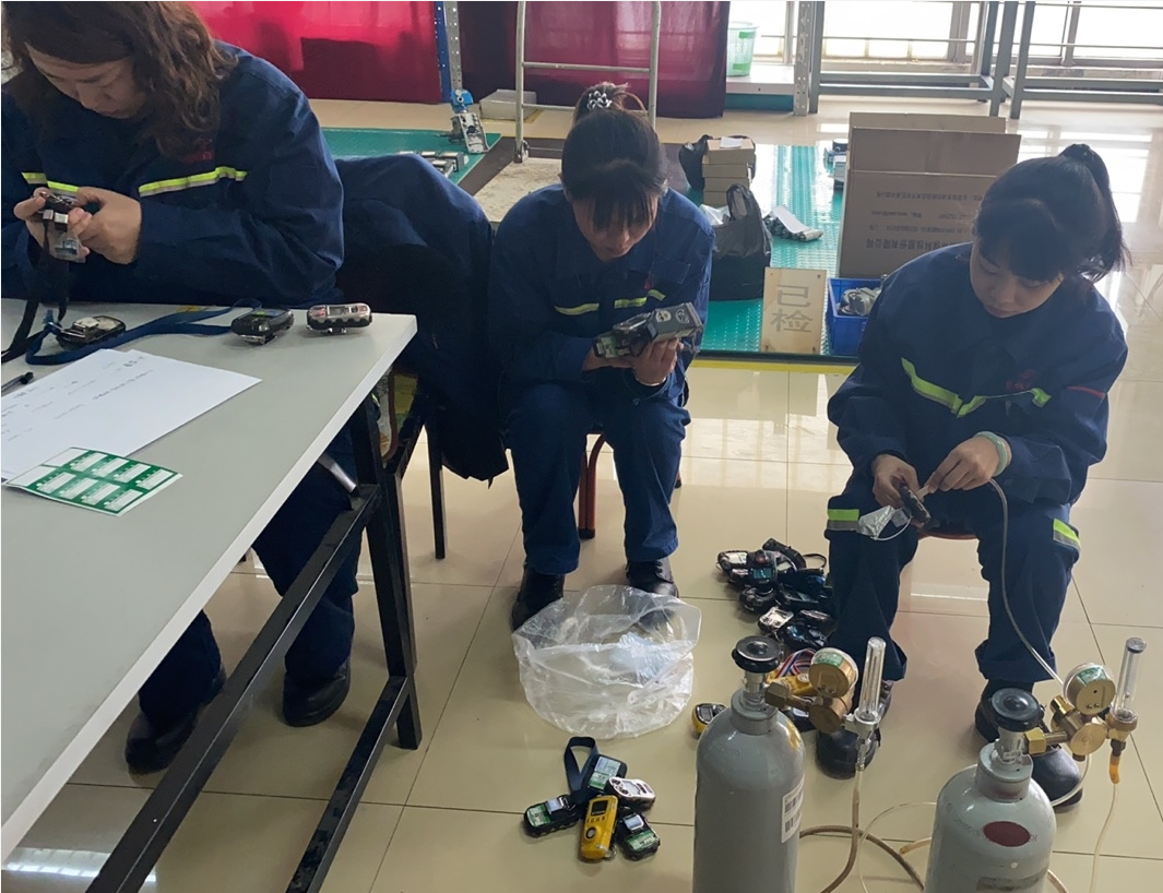 每年的4月初到6月底,首自信公司专业部门会进行大批量报警器(一氧化碳、氧气、氢气、硫化氢、可燃气等多种型号)的检定工作。
