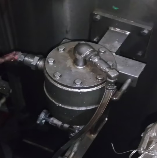 六机架工作侧和驱动侧的油压传感器安装于保护罩内,在进行轧机油压传感器拆卸操作时,运维人员要进入到机架内部。拆卸作业难度大、时间长,存在机械伤害和高温中暑隐患风险。油压传感器位于保护罩底部,与保护罩通过螺纹紧密结合,表面光滑,呈圆柱体,用普通工具难以固定,且保护罩内空间狭窄,无法正常使用力臂扳手和管钳工具。